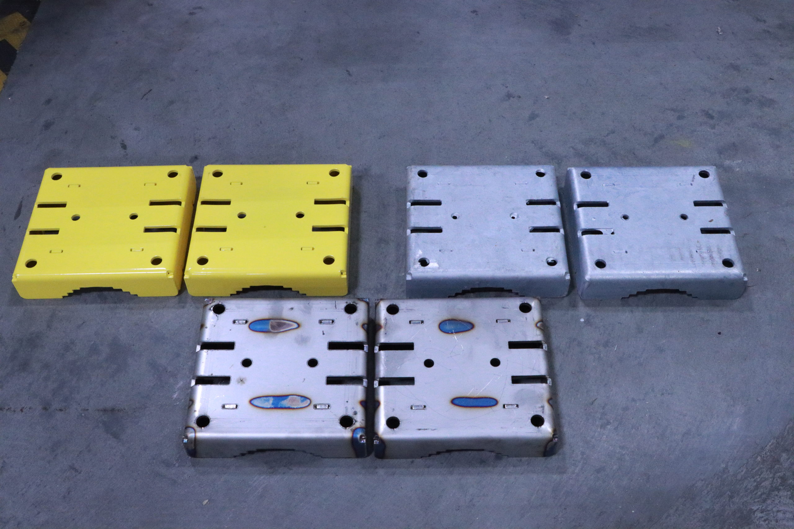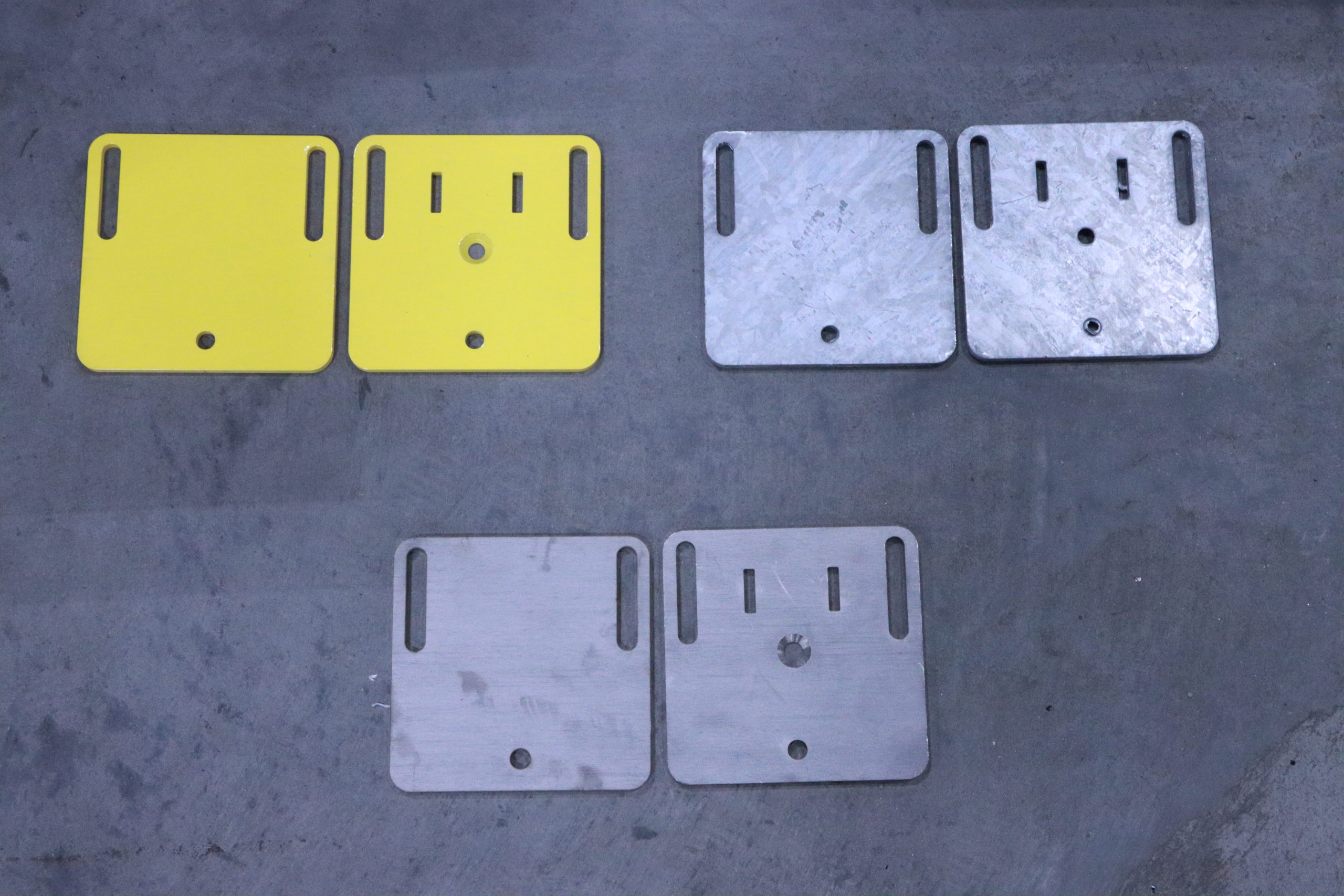 Please reference Adapter Bracket mounting guidelines below. Adapter Brackets are available in three finishes: Powder Coat Yellow, Stainless Steel or Hot Dipped Galvanized. This product is compatible with all PS Safety Access EdgeHalt Ladder Safety Gate products.